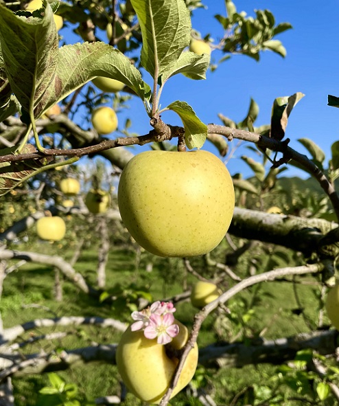 秋映は「千秋」と「つがる」を交配させたりんごです。